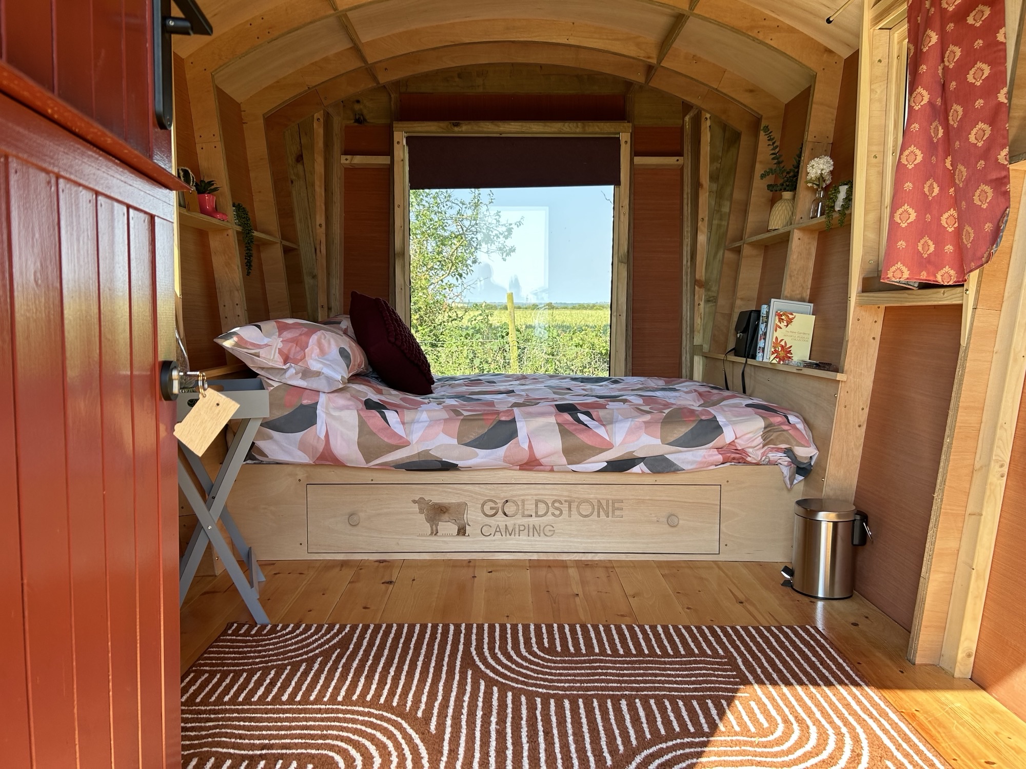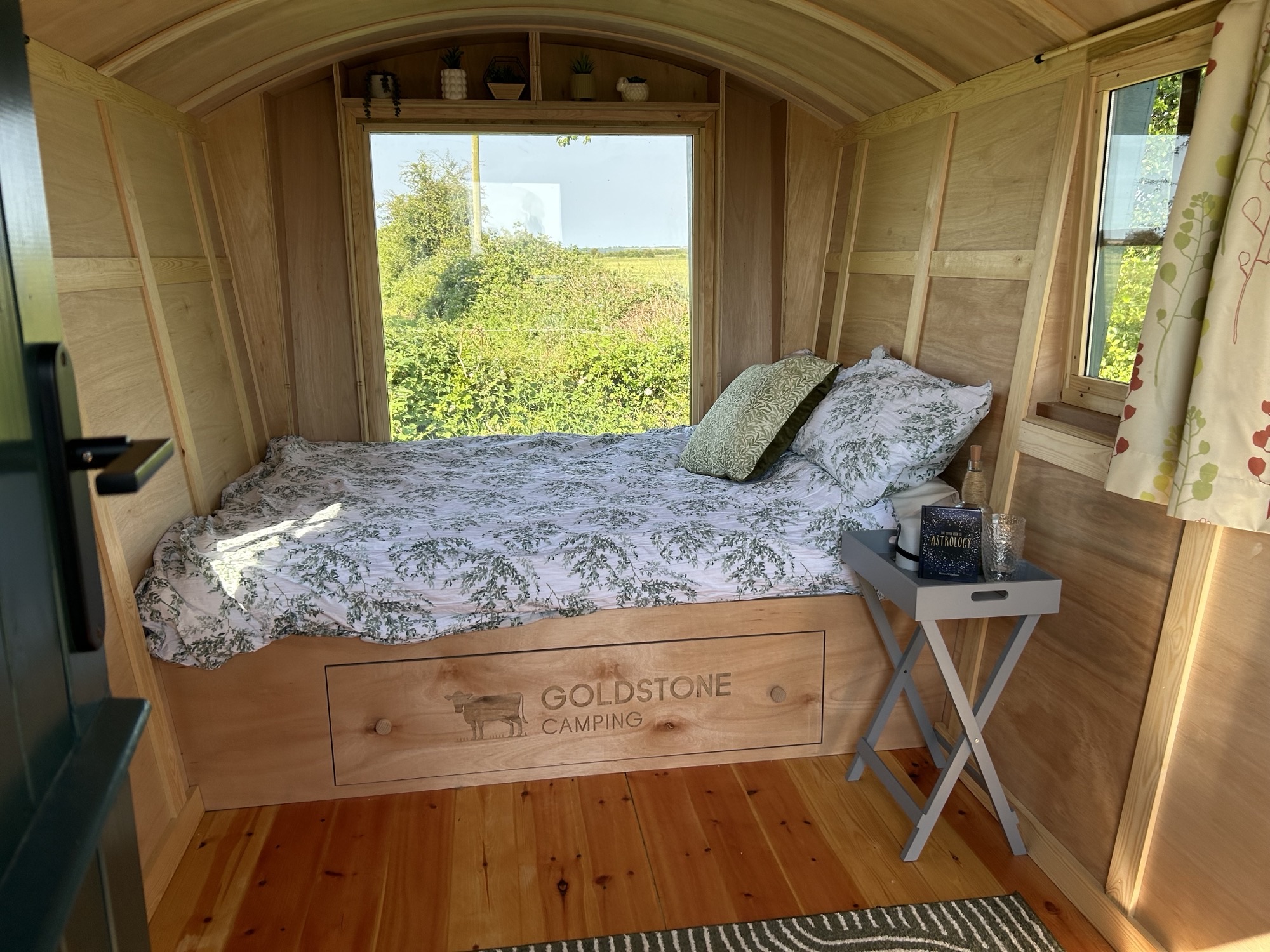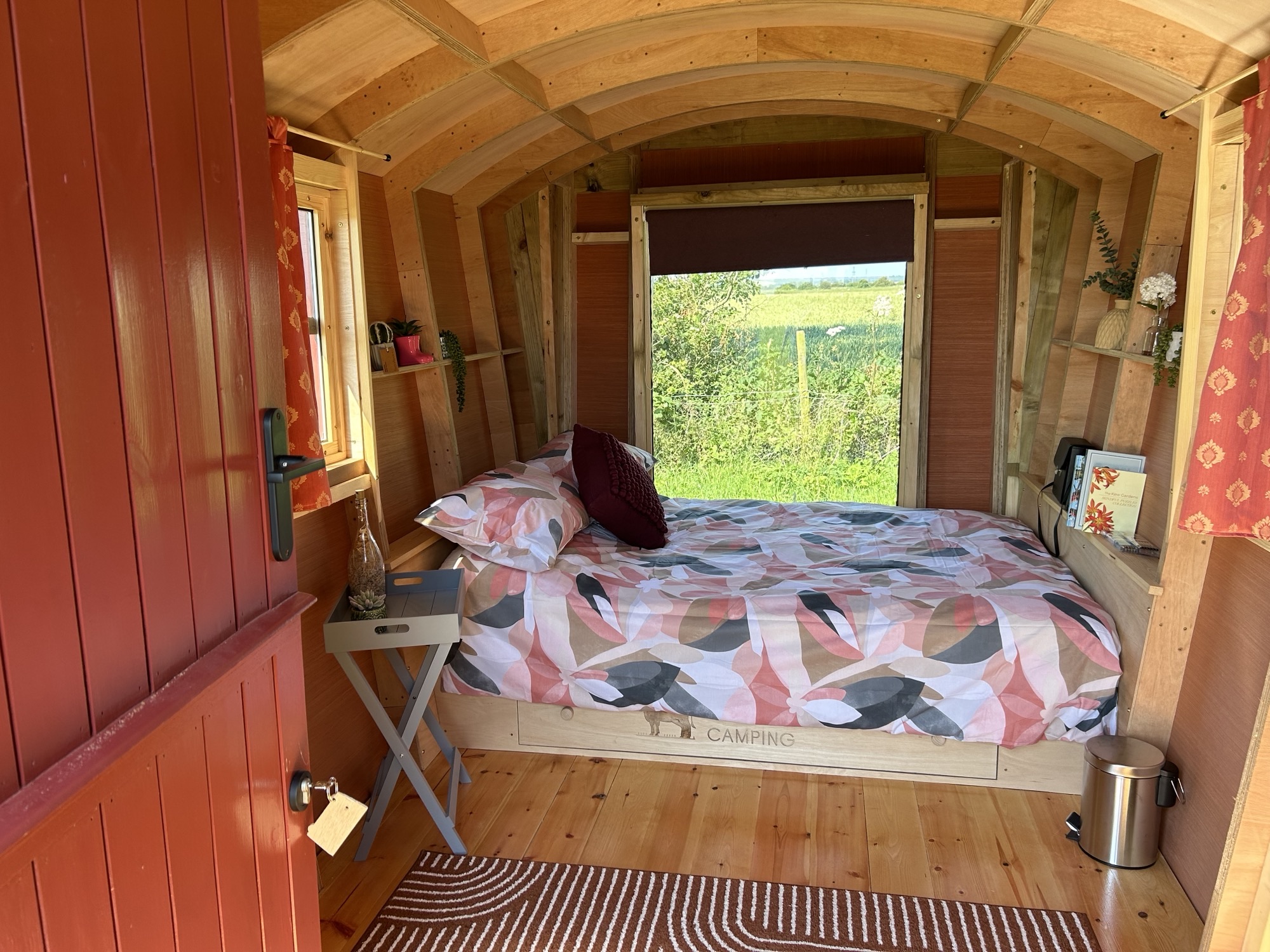 We have two beautiful Shepherds Huts available for stays of 2 days. 'George' and is £275 for a 2 night stay (has the green bedding and décor inside) while 'Winifred' is £260 for a 2 night stay, (has the red, pink and brown interior).